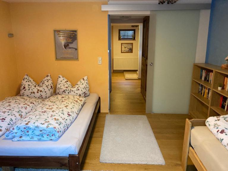 Schöne Ferienwohnung mit eigenem Eingang, Terrasse zum Garten, Schlafzimmer mit Doppelbett (160x200 cm) und Einzelbett (90x200 cm),